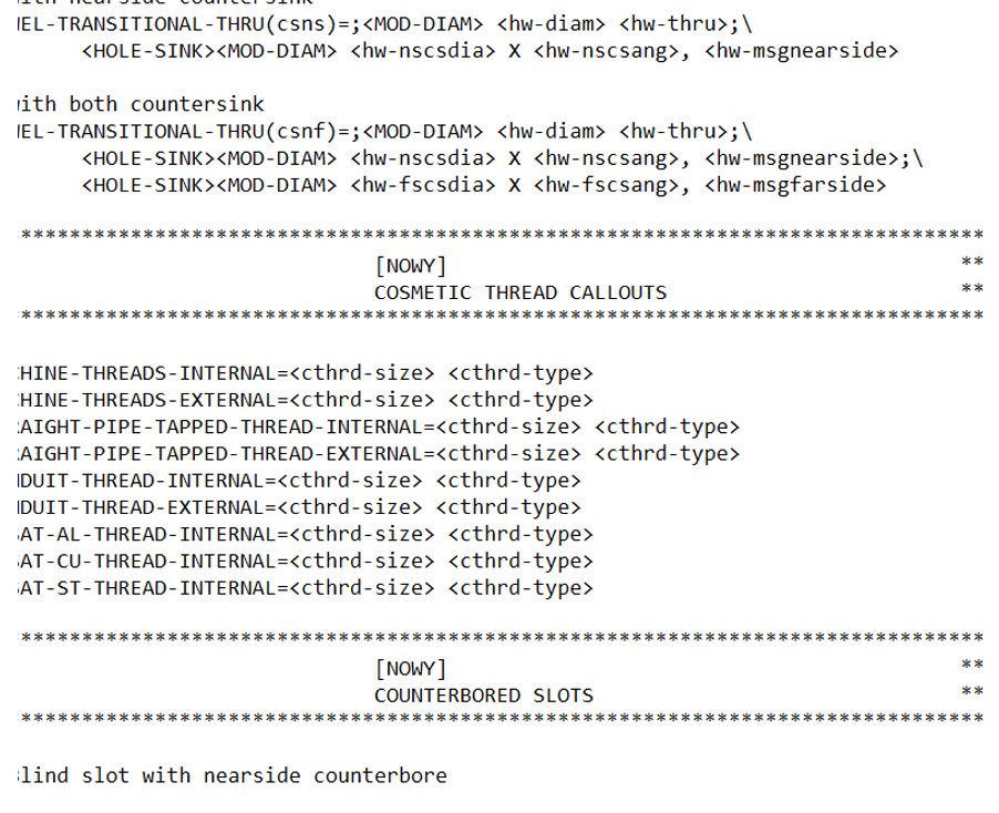 Aby adnotacje gwintu wstawiały się automatycznie należy odszukać plik calloutformat.txt. Przykładowa ścieżka: C:\ProgramFiles\SOLIDWORKSCorp\SOLIDWORKS\lang\polish. Otwieramy plik, następnie kopiujemy jedną z norm i wklejamy na końcu. W miejscach gdzie pojawia się nazwa starej normy wpisujemy drukowanymi literami nazwę nowo utworzonej normy np. „nowy”.