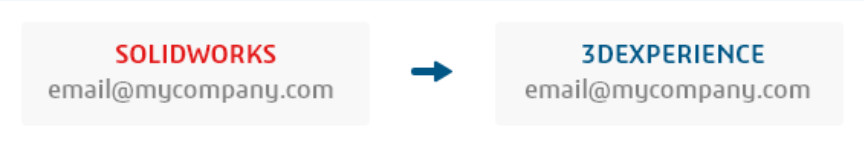 Uwaga: Należy pamiętać, aby istniejący Użytkownicy użyli tego samego adresu e-mail co w identyfikatorze SOLIDWORKS ID. System wówczas będzie mógł rozpoznać istniejące uprawnienia w DSx Client Care&Order. Strona logowania 3DEXPERIENCE komunikuje się z systemem kont SOLIDWORKS oraz tworzy konto lustrzane. Wprowadzany adres e-mail jest łącznikiem między obydwoma systemami. Dzięki takiemu rozwiązaniu istnieje możliwość ustawienia dwóch różnych haseł.