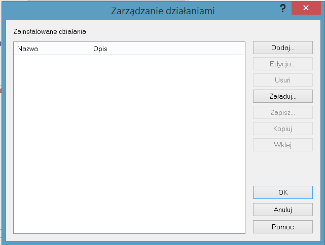Możemy tu utworzyć, zmodyfikować, powielić bądź zaimportować działania.