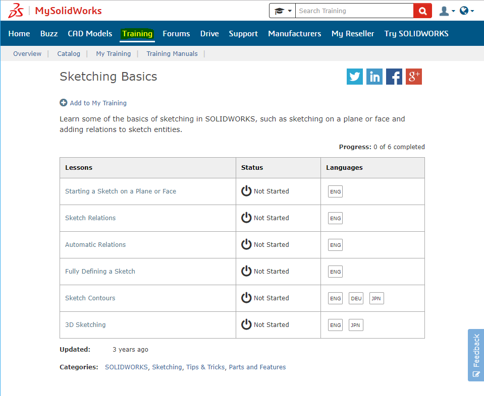 Dodano nowe treści szkoleniowe w formie video-tutoriali. Moduły są dostosowane do potrzeb użytkowników SOLIDWORKS, pomagają w przygotowaniu do certyfikacji SOLIDWORKS oraz uczą od podstaw modelowania części SOLIDWORKS, projektowania blach, modelowania zespołów złożeń i innych.