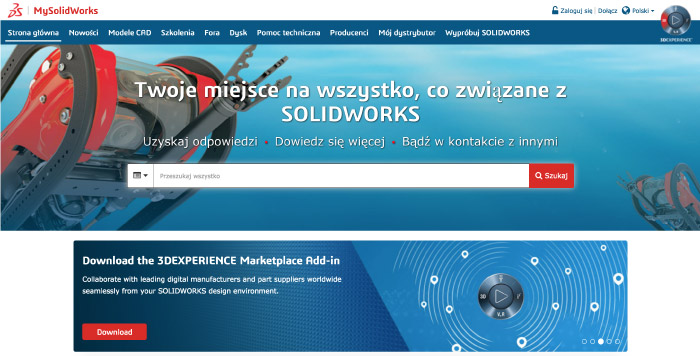 - MySolidWorks Search – Uzyskaj najlepszą odpowiedź na pytania ze wszystkich zasobów społeczności SOLIDWORKS, Bazy wiedzy i zaawansowanych sekcji forum w jednym miejscu