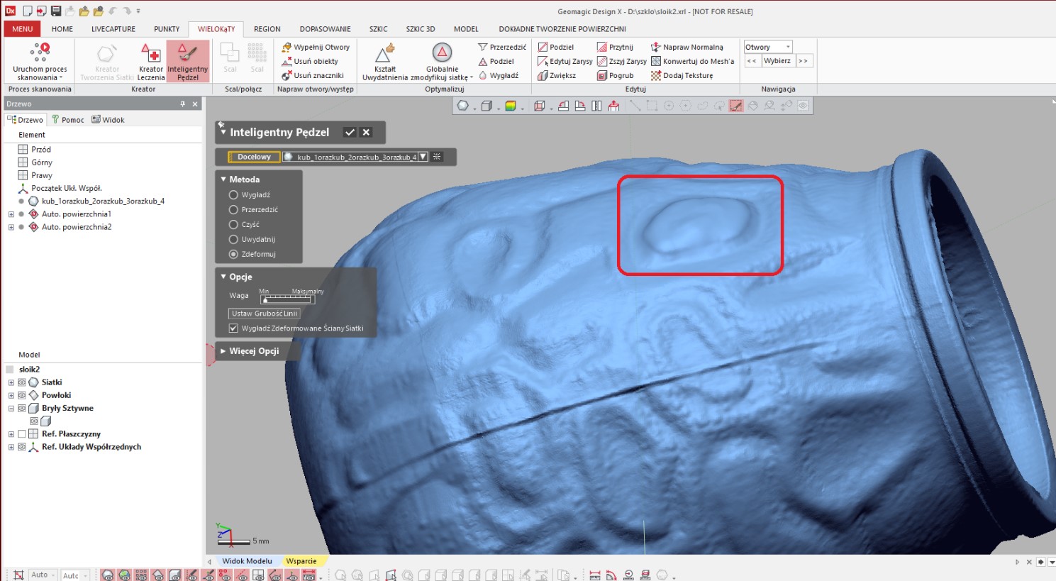 Widok wczytanej siatki do oprogramowania Geomagic Design X.